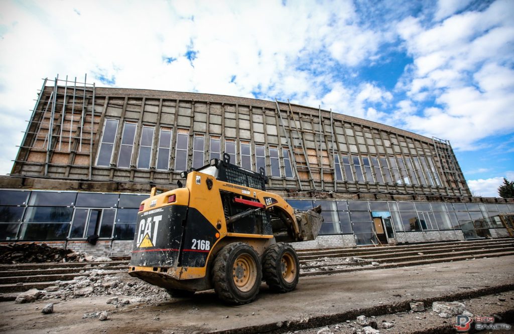 В настоящий момент во дворце действительно идут ремонтные работы, где задействовано около 200 человек с учетом проектировщиков. В настоящий момент строители трудятся над ремонтно-восстановительными работами. Сегодня тут приводятся в порядок трибуны. В подвале полностью переделана планировка – все снесено, устанавливаются новые перегородки, делается вентиляция, электрика заводится