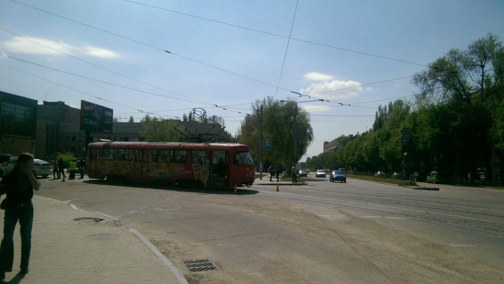 Инцидент произошел в пятницу, 27 апреля, на перекрестке улицы Жаботинского-Лермонтова. Иномарка черного цвета на перекрестке столкнулась с вагоном трамвая и поспешно скрылась с места аварии.