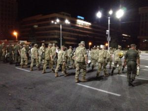 Пока сотрудники Национальной полиции, ГСЧС, бойцы Нацгвардии отрабатывают маневры, за ними с интересом наблюдают несколько десятков горожан.