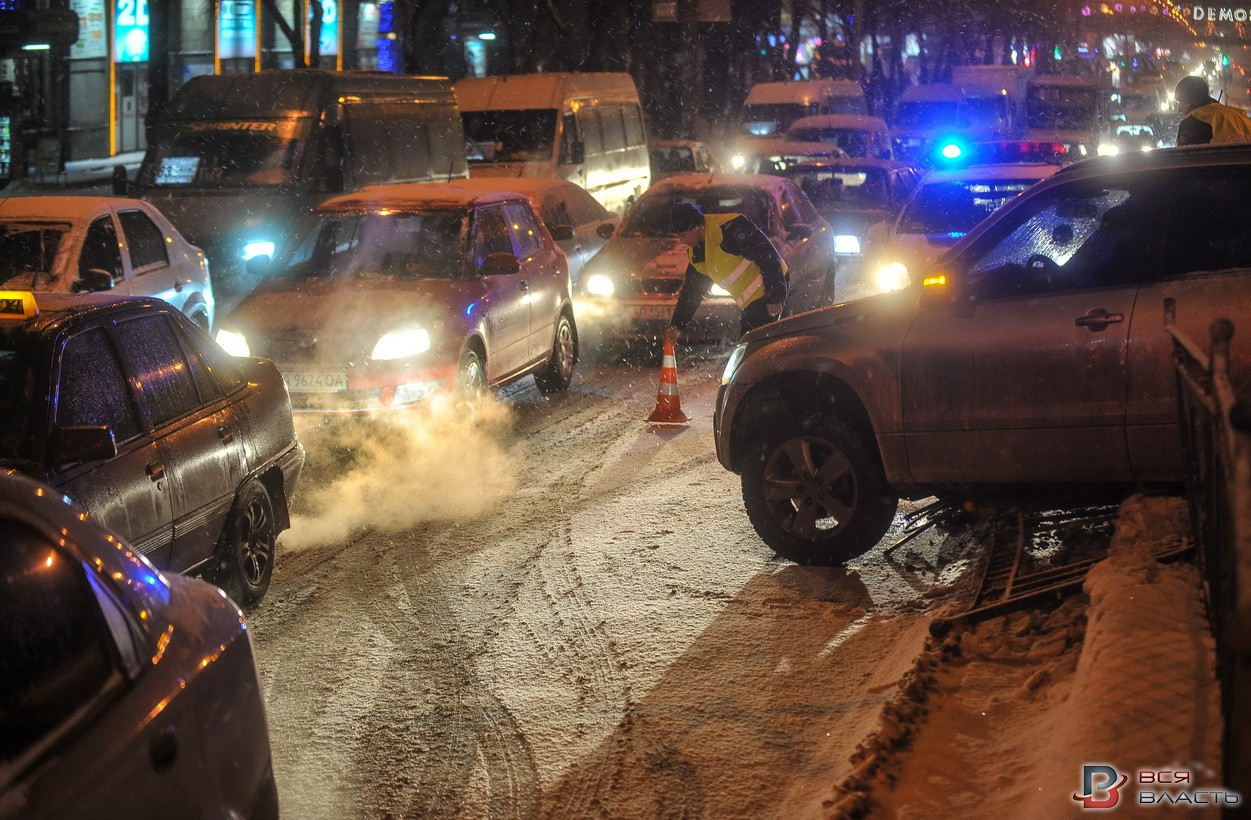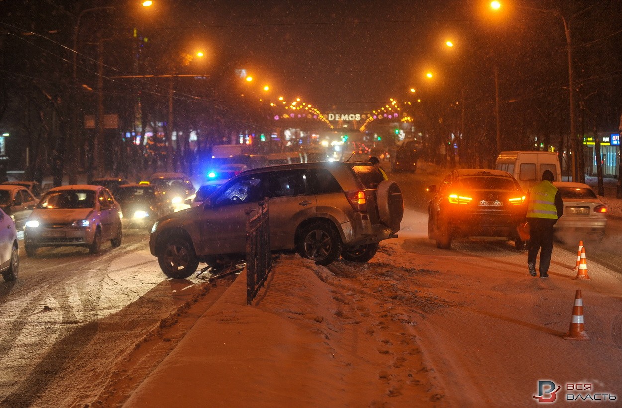 Вчера, 11 января, около пяти часов вечера в центре Запорожья произошло ДТП: внедорожник снес разделительную ограду.