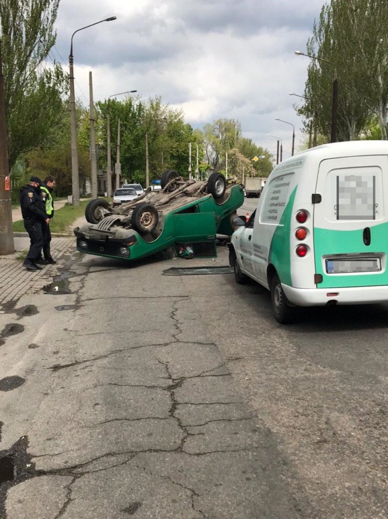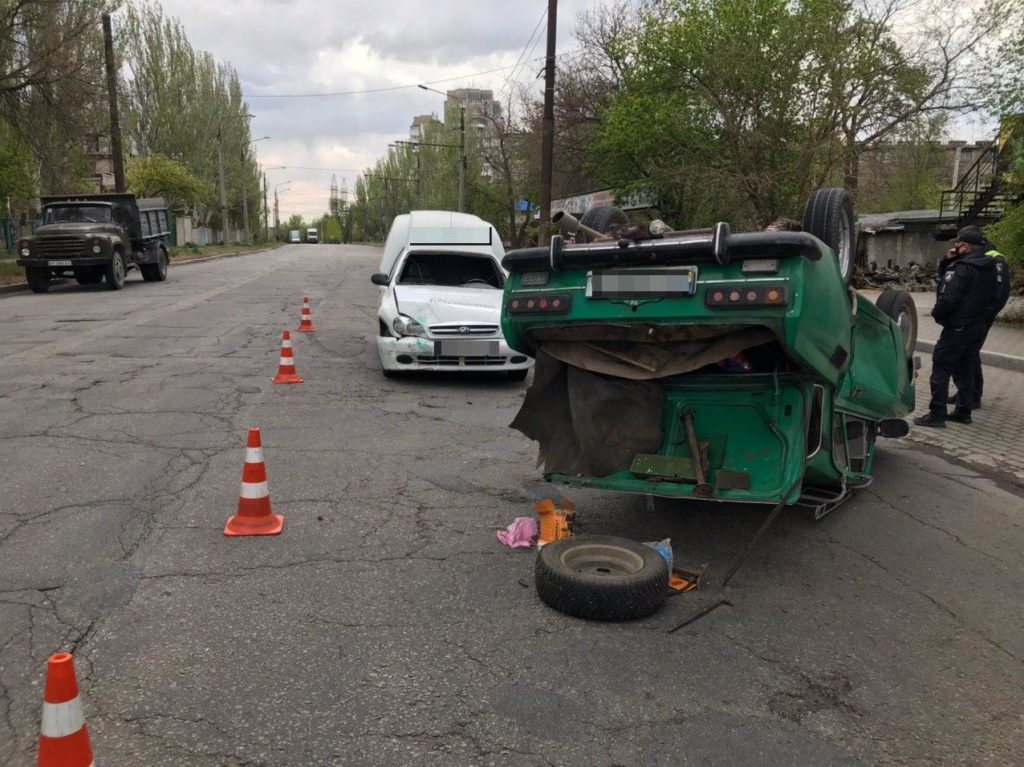 В Запоріжжі на Правому березі сталась ДТП: одна з автівок "лягла" на дах, — ФОТО