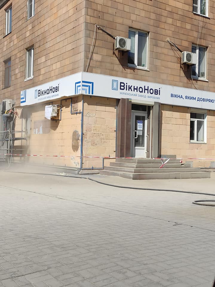 Сьогодні розпочато роботи з очистку фарби на черговому фасаді будинку – пам’ятці архітектури. Підприємцем по проспекту Соборному, 234 виконуються вимоги приписів відділу охорони культурної спадщини та Інспекції з благоустрою щодо приведення фасаду до первісного стану.
