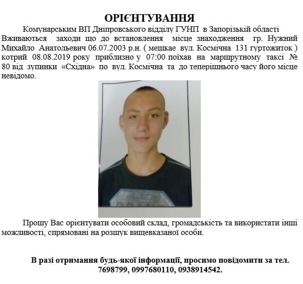 16-річний Михайло Нужний близько сьомої ранку сів в маршрутне таксі №80. Більше про його місцезнаходження нічого не відомо наразі.