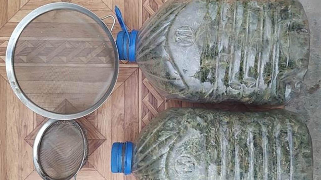 ГУНП Запорізької області повідомляє, що правоохоронці отримали інформацію про незаконне зберігання наркотичних речовин на території домоволодіння. Поліцейські провели обшук в будинку по вулиці Матросова та виявили поліетиленові пакети, пластикові ємності з висушеною речовиною рослинного походження сіро-зеленого кольору, схожою на канабіс. Загальна вага вилученого близько одного кілограма.