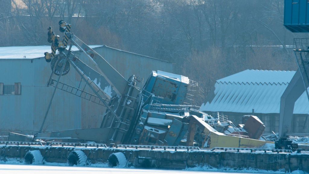 Начальник диспетчерської служби портів центрального регіону АСК «Укррічпорту» Євген Водолазький розповів TV5, що кран не впав. Його навмисно демонтували. На такі міри пішли тому, що вийшов строк експлуатації підйомного крану.