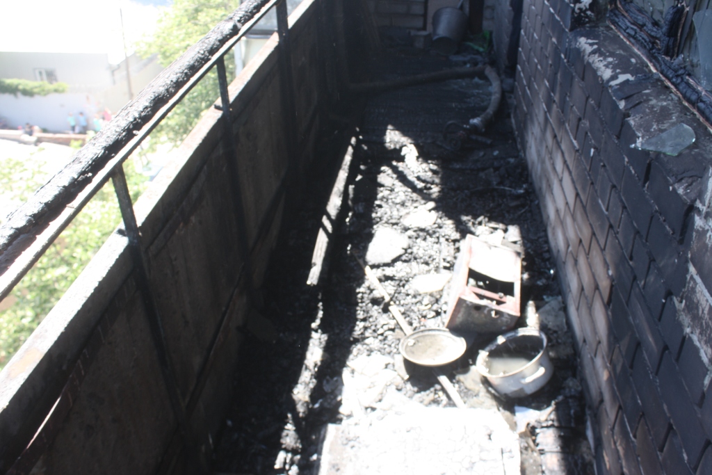Как оказалось, в девятиэтажном жилом доме по ул. Пищевая с четвертого по седьмой этажи горят балконы и вещи в них, на общей площади 20 кв.м.