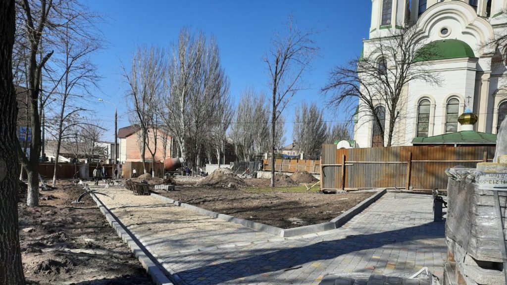 В Запорожье продолжается реконструкция сквера Пионеров.