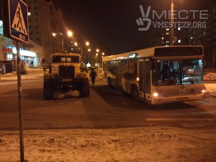 Вчера, 20 января, в Днепровском районе Запорожья автобус №18 застрял поперек дороги.