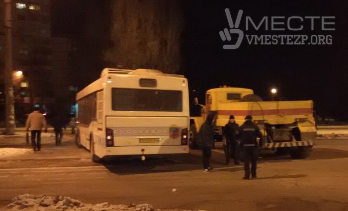 На место происшествия вызвали полицию и тягач «Запорожэлектротранса», который и вытащил автобус на дорогу.