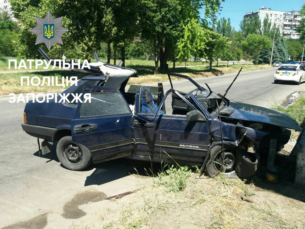 Как сообщает пресс-секретарь патрульной полиции Запорожье Юлия Шеймухова, водитель автомобиля ВАЗ-21093 ехал на высокой скорости. Не справившись с управлением на повороте, он врезался в бетонный блок.