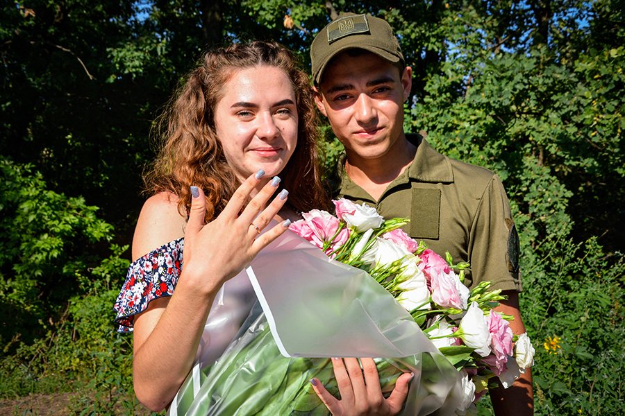 «Справжнє кохання перемагає всі негаразди! Ми впевнені, що і Україна обов’язково переможе, адже любов до Батьківщини палає в наших серцях з самого народження!», – зауважили майбутні молодята.