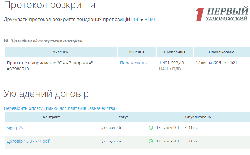 Фірма «Січ-Запоріжжя» зареєстрована на підприємницю Тетяну Воробйову (їй також належить фірма «Спецремстрой-2007) та спеціалізується на будівництві споруд електропостачання та телекоммунікацій. Директором фірми числиться Юрій Сенькін. Два роки тому ДФС через суд вимагали у фірми виплатити 34 тисячі податкового боргу, а також в 2017 році «Січ -Запоріжжя» фігурувала в кримінальному провадженні в справі про фіктивне підприємництво як посередник.