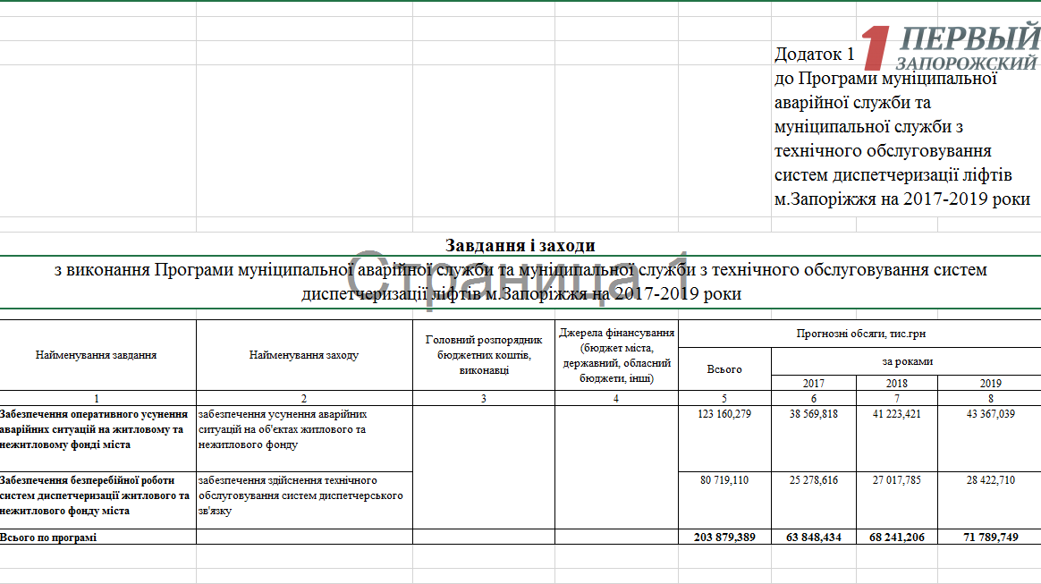Департамент ЖКХ Запорожского городского совета предложил увеличить финансирование «Программы муниципальной аварийной службы и муниципальной службы по техническому обслуживанию систем диспетчеризации лифтов Запорожье на 2017-2019 годы».