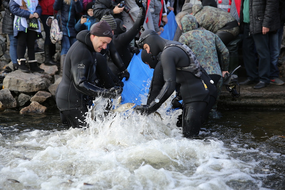 В рамках этой акции в речку Днепр было выпущено 10 тысяч особей малька белого толстолоба и амура – естественных речных мелиораторов. Также водолазы почистили реку и подняли со дна реки более 500 килограмм мусора. А на Набережной магистрали прошел субботник под названием «Чистый город».