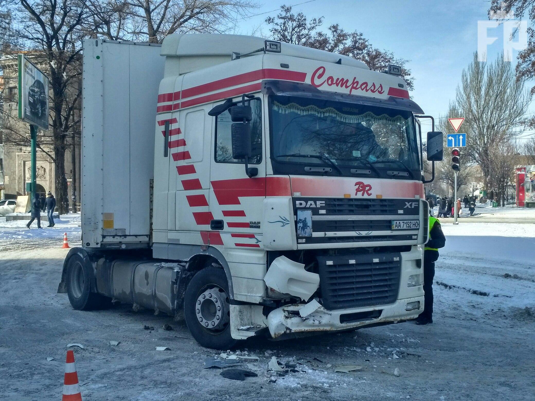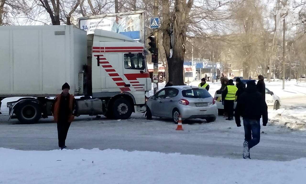 Сегодня, 8 февраля, около одиннадцати часов дня в Запорожье произошло ДТП с участием грузовика DAF и легкового авто Peugeot.