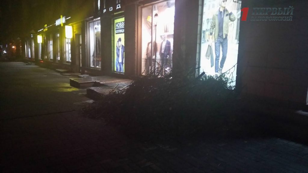 По непонятной причине сваленные ветви располагаются на крыльце одного из магазинов одежды в районе Мира. Местные жители стали жаловаться на то, что проспект захламлен этими ветвями и более недели никто не может вывезти эти обрезки, которые в последствии могут обрасти стихийной свалкой мусора.