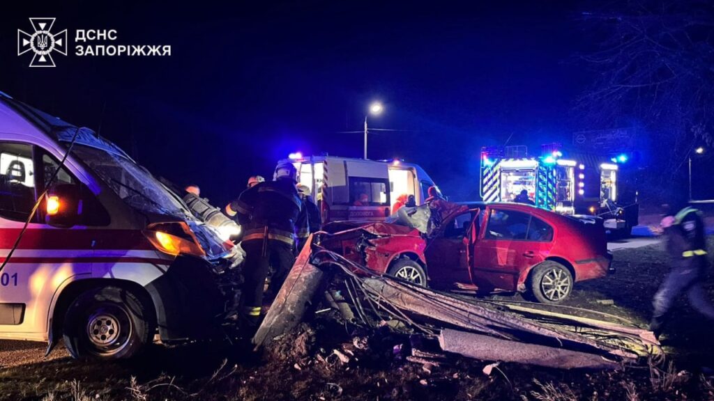 Ввечері, 19 грудня, в одному із районів Запоріжжя легковий автомобіль «Skoda Octavia» зіштовхнувся з каретою швидкої допомоги та врізався електричний стовп вуличного освітлення.