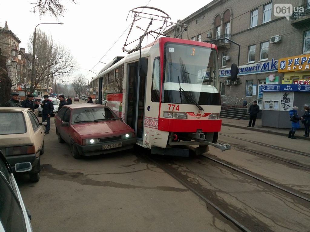 В Запорожье в ДТП попал один из новых трамваев местной сборки.
