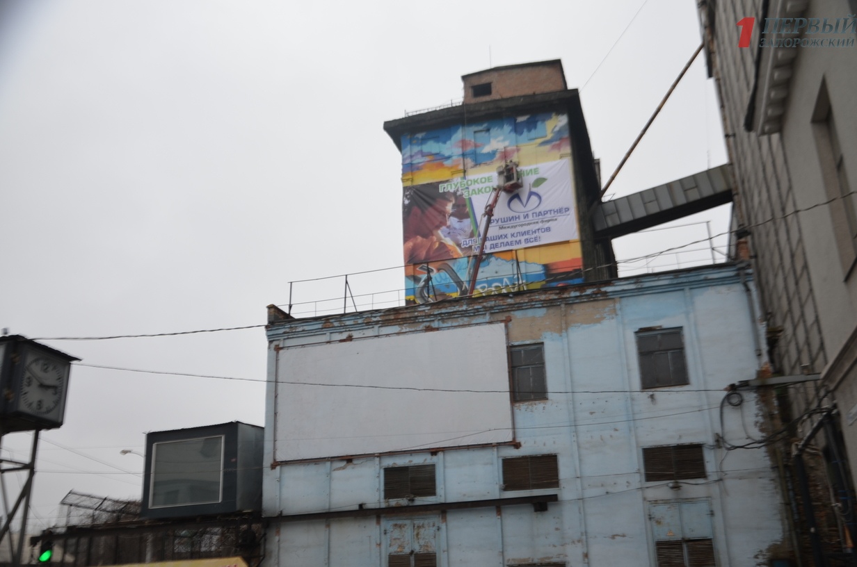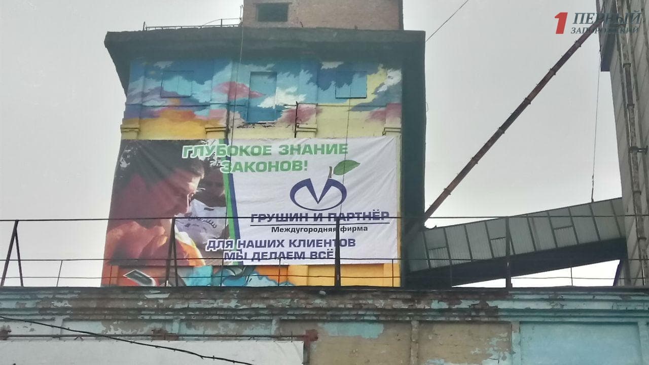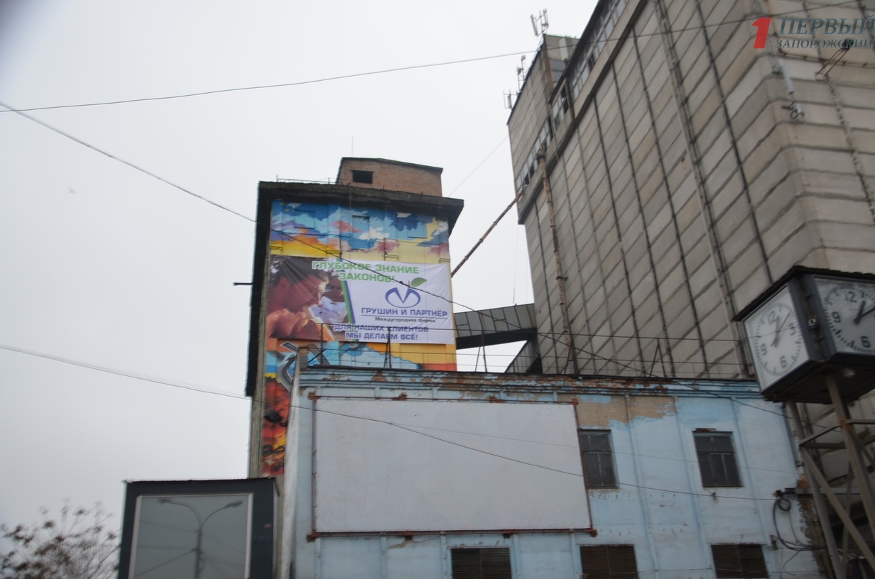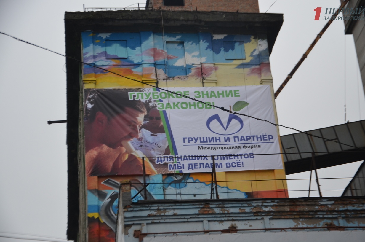 Сегодня, 27 марта, с помощью автовышки по заказу собственника этого помещения Максима Дрозденка рабочие повесили плакат с троллингом его давнего оппонента депутата Запорожского облсовета и главы областной ячейки фракции “Укроп” Ярослава Гришина.