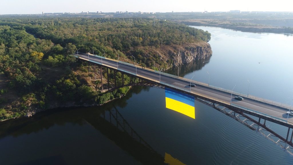 У Запоріжжі до Дня державного прапора та Дня незалежності України на Арочний міст вивісили над Дніпром державний прапор площею 400 квадратних метрів – найбільший національний прапор у всій області.