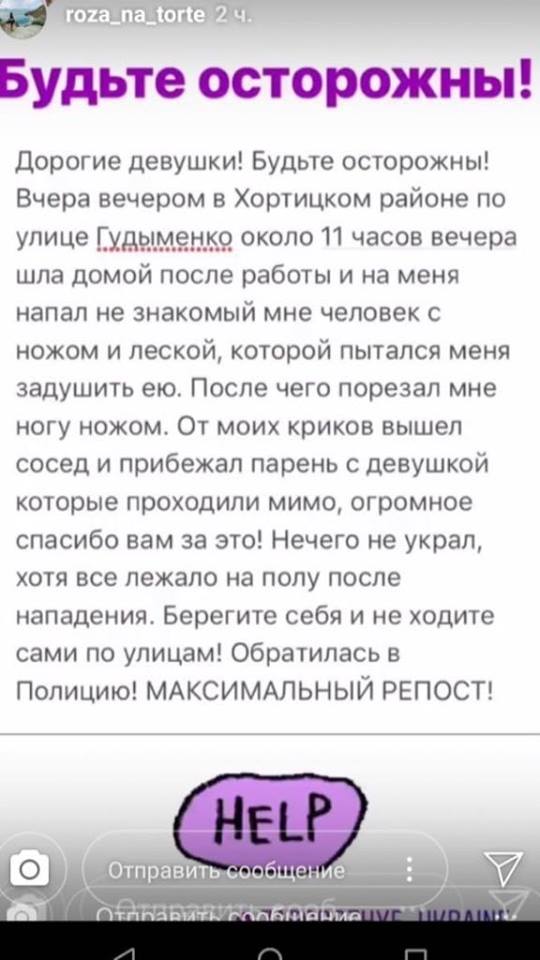По словам самой потерпевшей, нападавший также оставил ей порез на ноге. К счастью, злоумышленника спугнул сосед и прохожий, которые прибежали на крики о помощи.