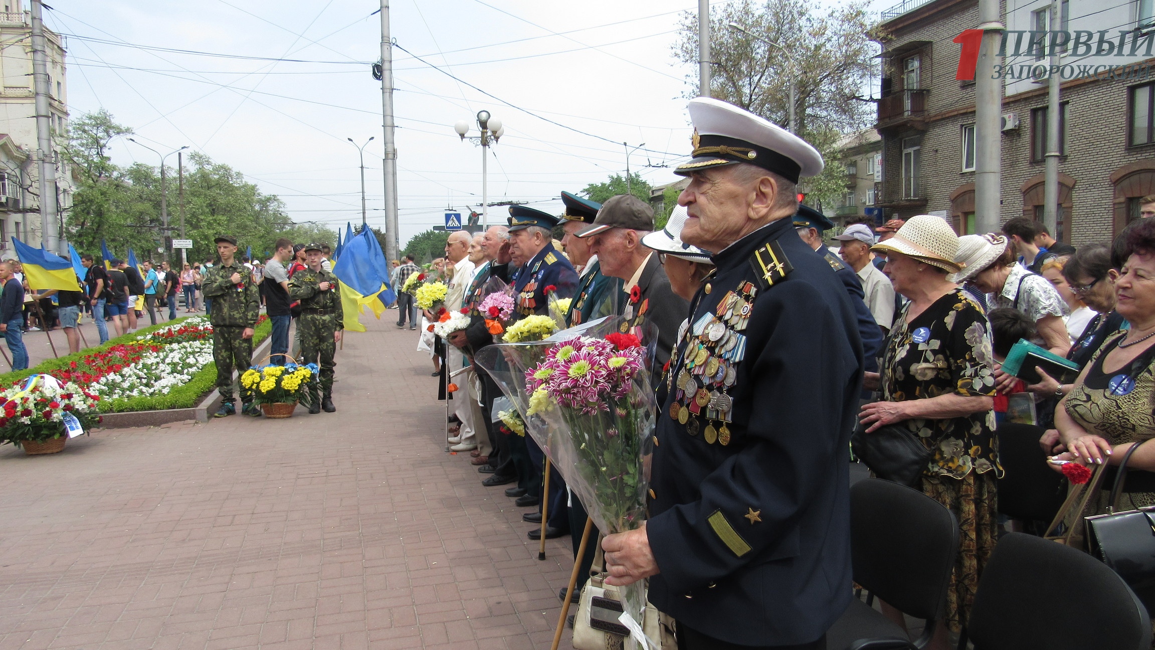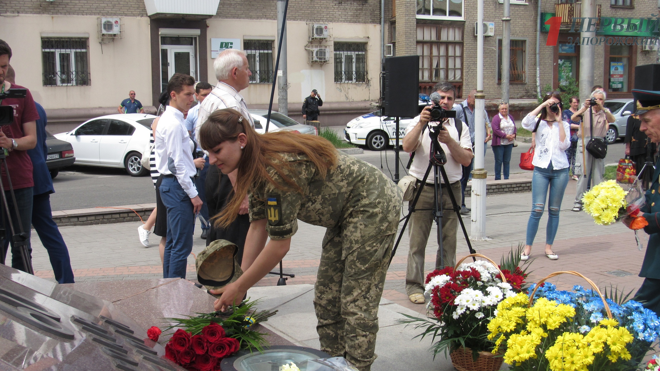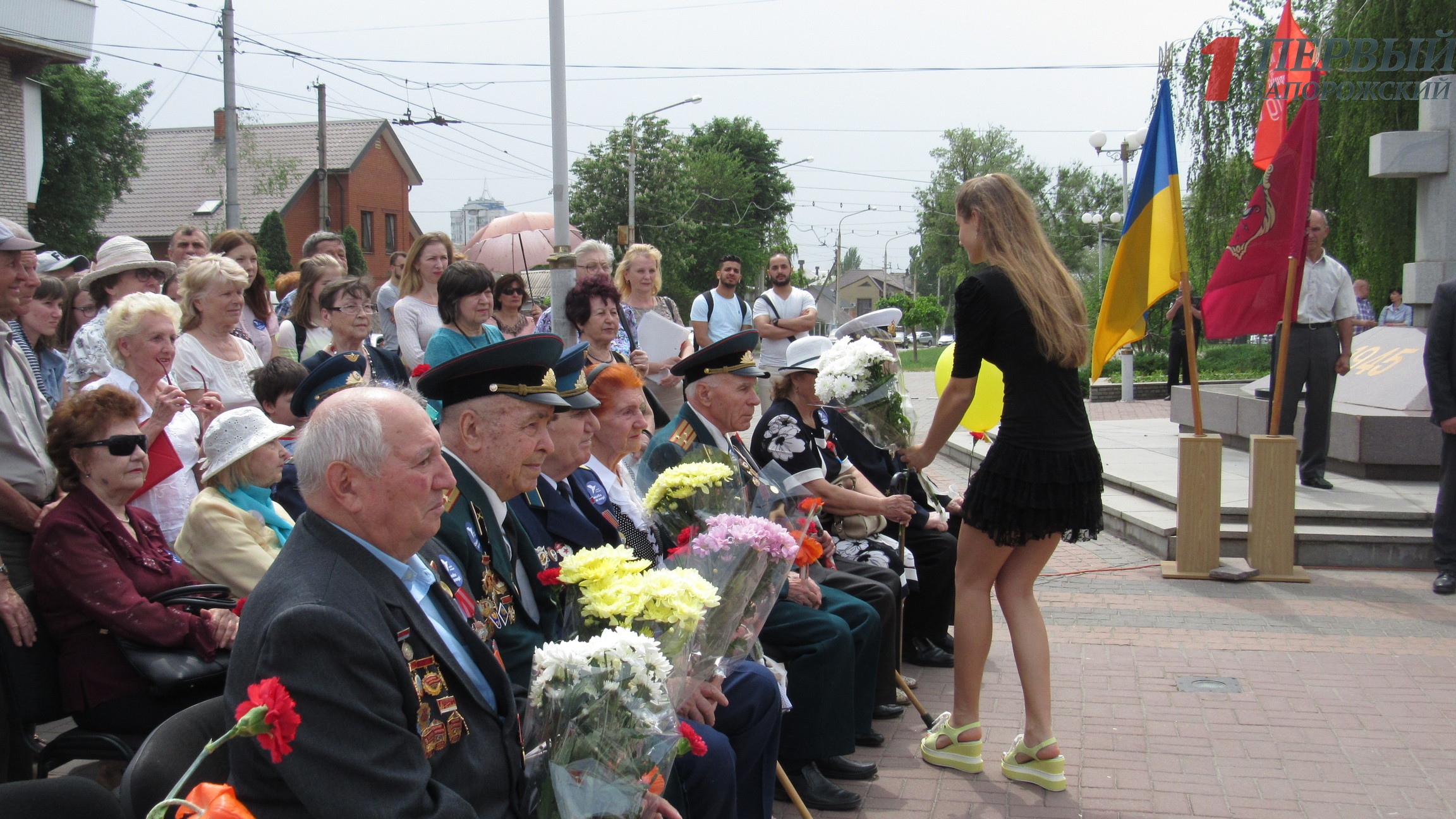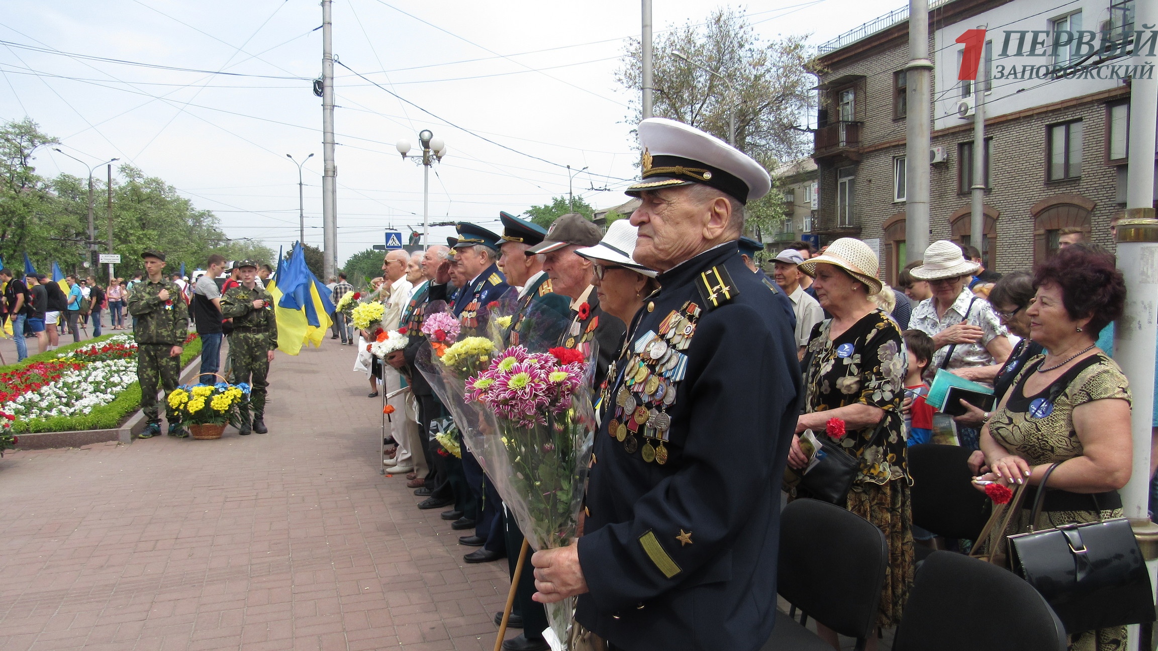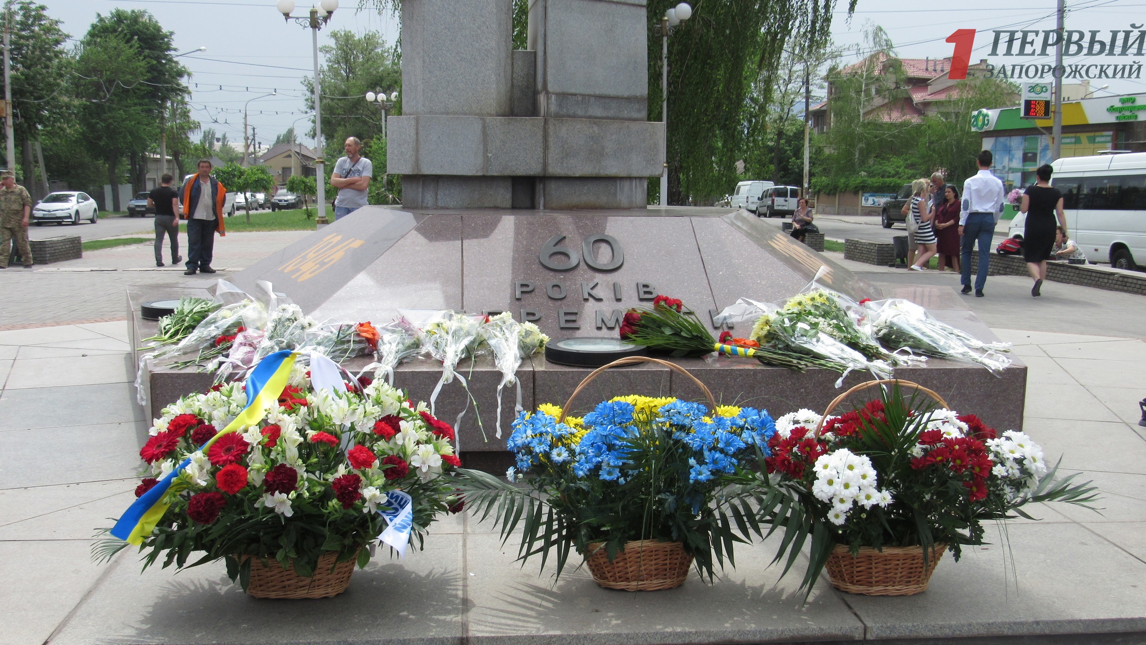На митинг пришли ветераны и дети войны, студенты, школьники и просто неравнодушные запорожцы. Участники собрались на бульваре Шевченко около памятного знака «60 лет Победы».