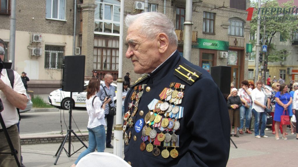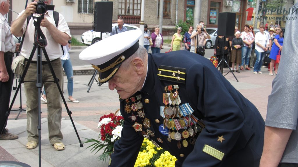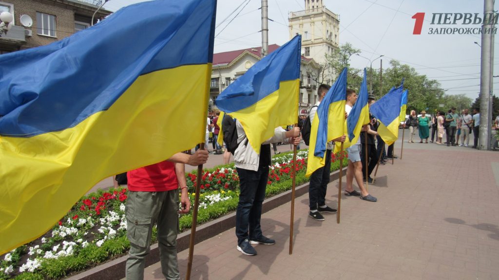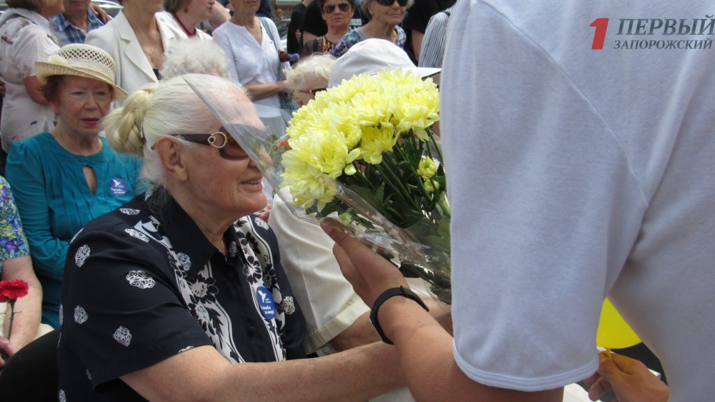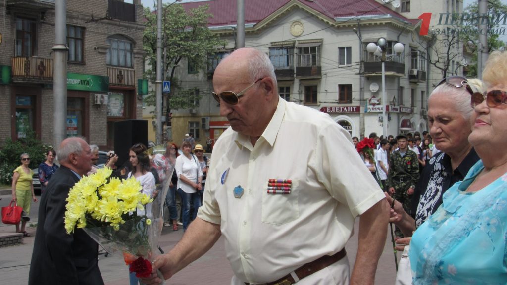 На митинг пришли ветераны и дети войны, студенты, школьники и просто неравнодушные запорожцы. Участники собрались на бульваре Шевченко около памятного знака «60 лет Победы».