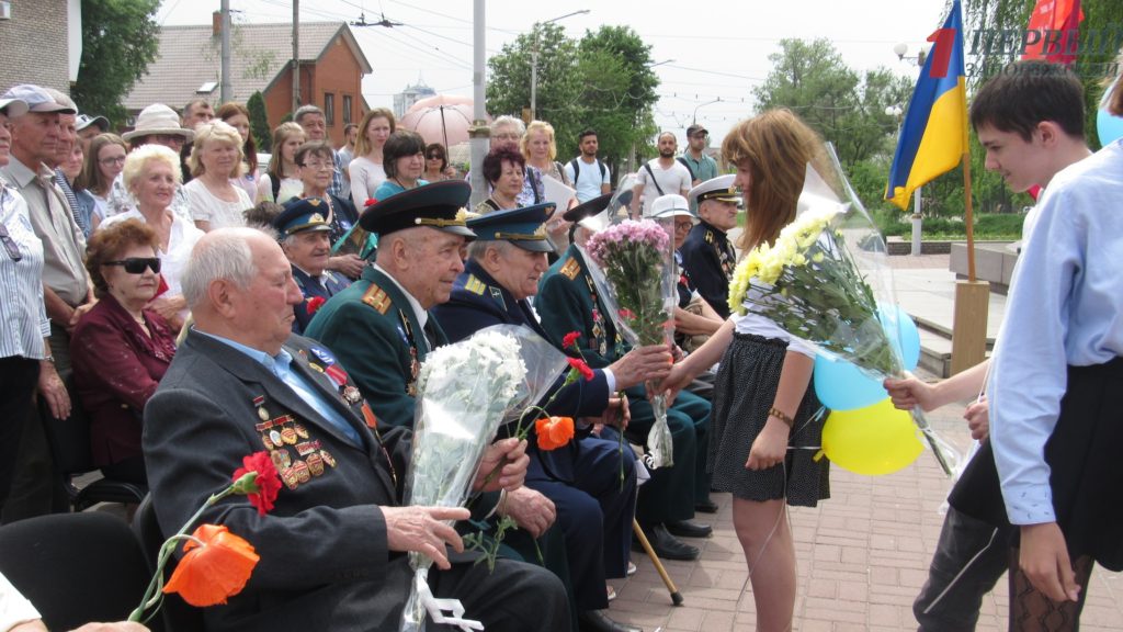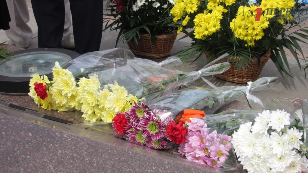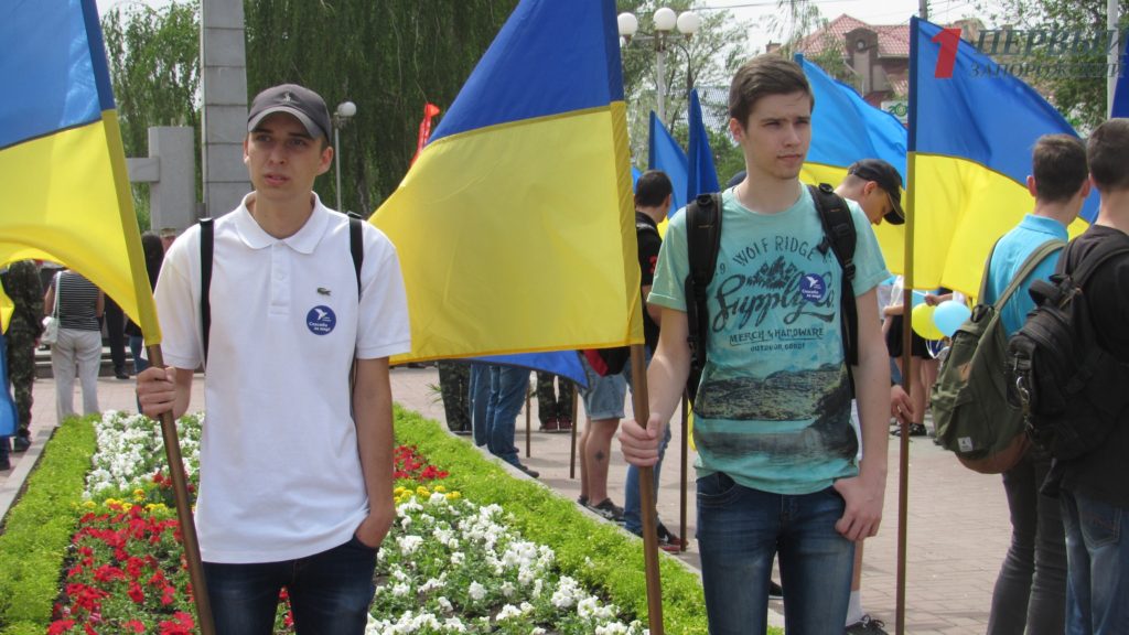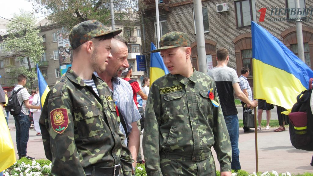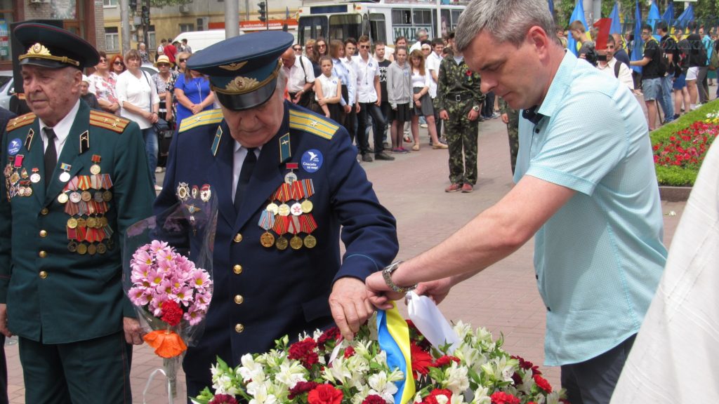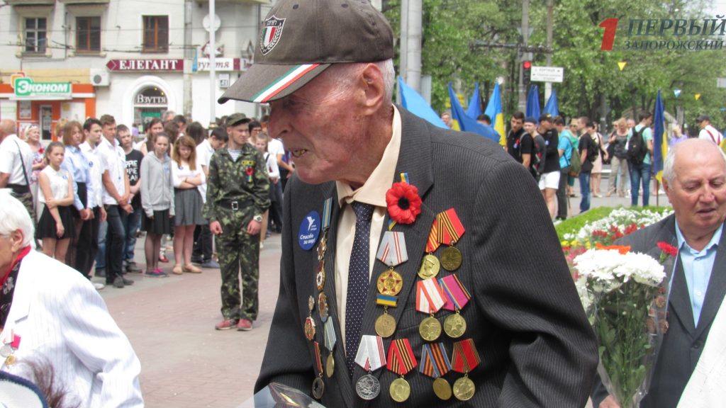 На митинг пришли ветераны и дети войны, студенты, школьники и просто неравнодушные запорожцы. Участники собрались на бульваре Шевченко около памятного знака «60 лет Победы».