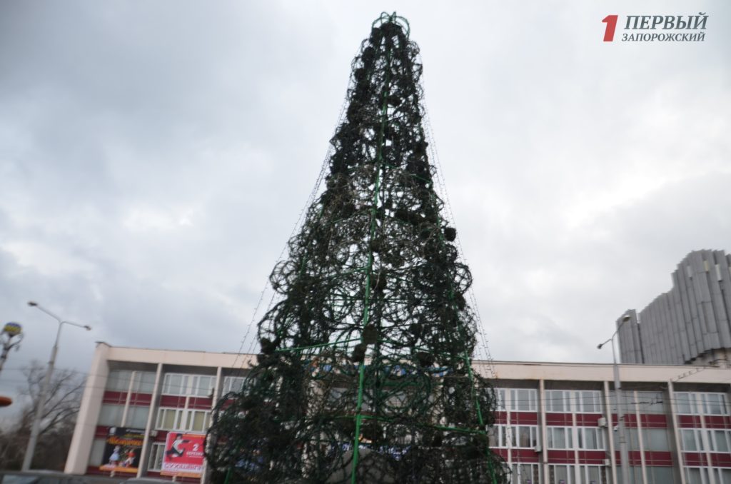 Силами коммунальщиков в Запорожье установили третью елку на аллее фонтанов на бульваре Шевченко.