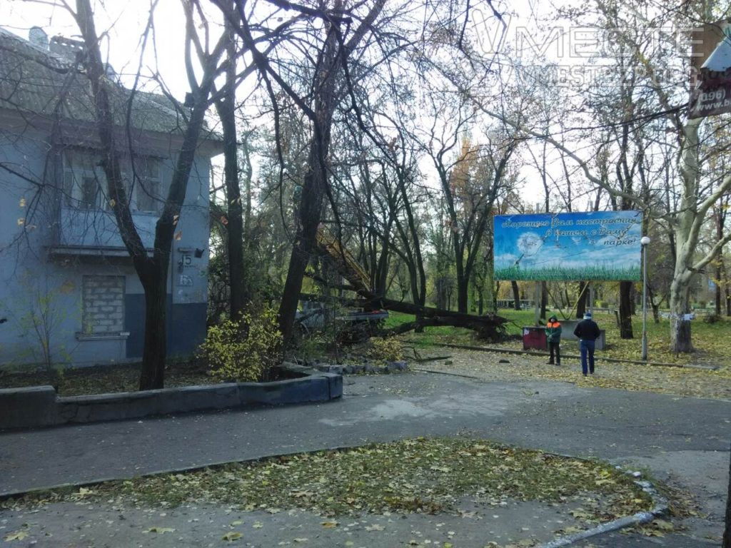 Вчера ночью, 11 ноября, на жилой дом на улице Сергея Синенко упала огромная акация.
