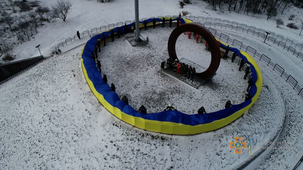 Вчора у Запоріжжі до Дня Соборності України представники системи МВС та медики розгорнули 100-метровий Прапор України і створили коло єднання.