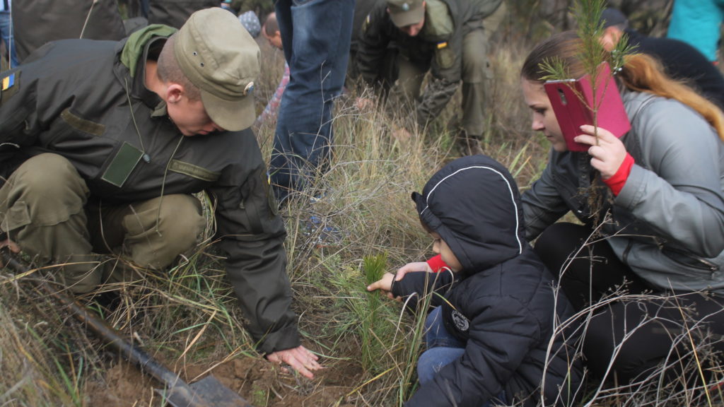 Також учасниками акції стали 25 гвардійців військової частини 3029 Національної гвардії України. Вони приїхали, щоб допомогти дітям висаджувати молоді дерева.