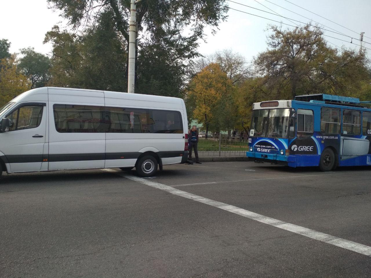 В Запорожье на Космосе столкнулись маршрутка и троллейбус - ФОТО