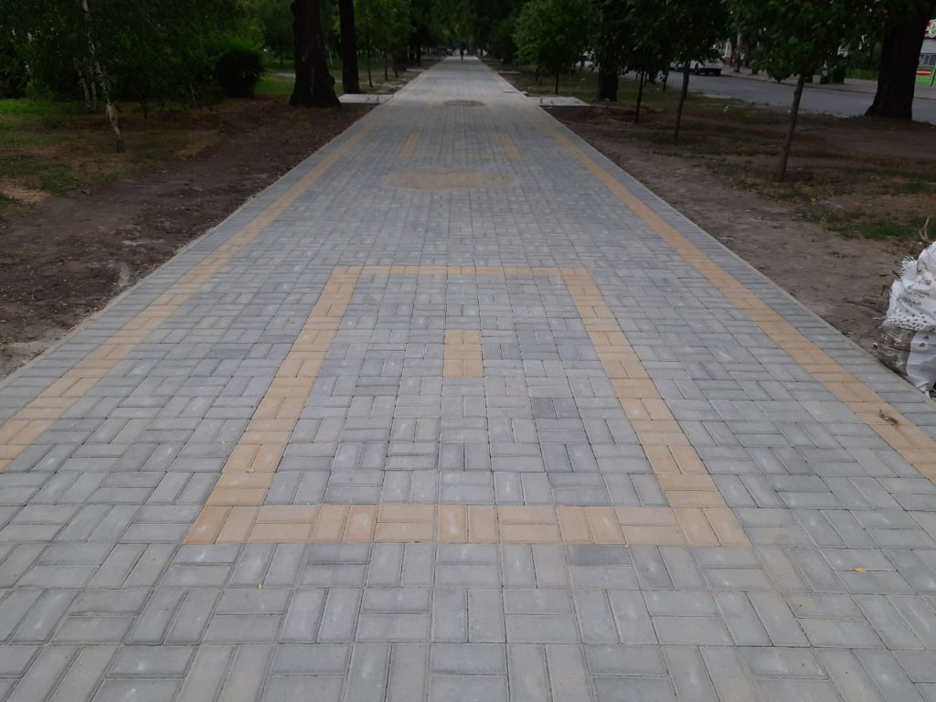 Замість пошкодженого асфальтового покриття та тротуарної плитки тут вже укладають нову плитку. Всього буде вимощено більше 2600 квадратних метрів плитки, а також встановлять тут нові лавки та урни.