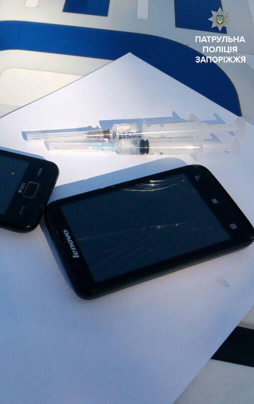 На место вызвали следственно-оперативную группу, которая изъяла шприцы и мобильный телефон в присутствии двух понятых, сообщает пресс-служба запорожской патрульной полиции.