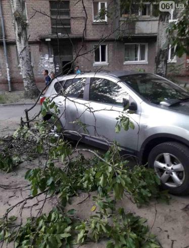 В Запорожье на припаркованную иномарку упало дерево - ФОТО