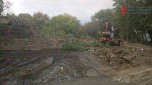 Сейчас на месте работает эскаватор-погрузччик и самосвал, который сносит стройматериалы на основной участок около балки. Параллельно с этим в глубине балки идет выкорчевание деревьев. Строители рассказывают, что все деревья на огражденном участке будут спилены, сама поверхность будет выровнена с помощью бульдозера, внизу будут проложены дорожки и создана аллея, а уже весной будет организована высадка зеленых насаждений.