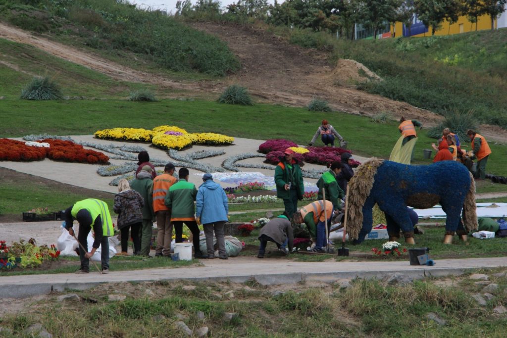 Сегодня, 4 октября, на «Радуге» более 170 специалистов КРСП «Зеленстрой» трудятся над созданием цветочных композиций. Предусмотрены фотозоны, экспозиции для детей со сказочными героями, а также множество праздничной атрибутики.