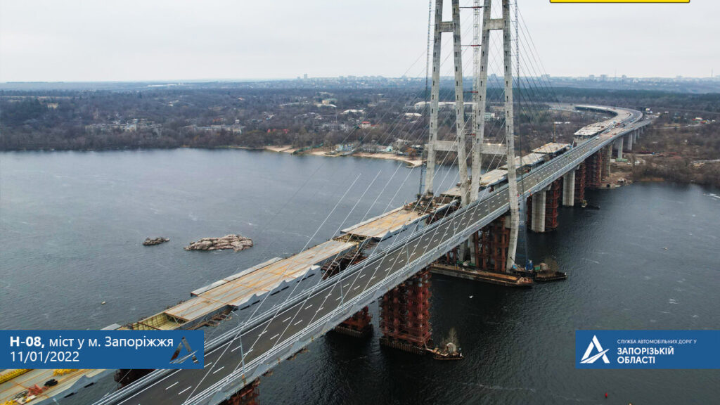 У Запоріжжі практично завершили будівництво вантового мосту: поклали асфальт та нанесли дорожню розмітку.