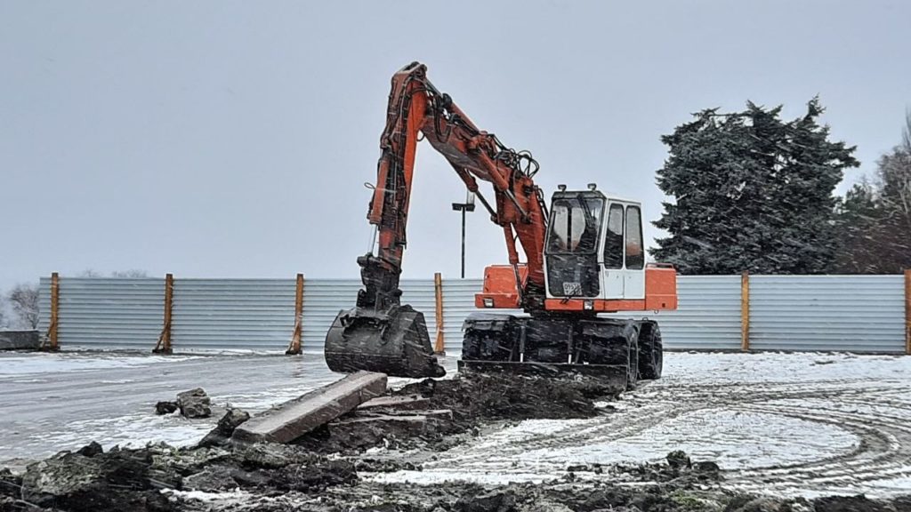 Зараз підрядники працюють над демонтажем постаменту знесеного у 2016 році пам’ятнику Леніну. Ця робота визначена, як першочергова. За словами представника підрядної організації, демонтаж постаменту буде складним, оскільки перед ними поставлене завдання демонтувати постамент зі збереженням старих гранітних плит, якими облицьований об’єкт. Наразі спецтехніка прибирає бордюри навколо постаменту, а робітники вручну демонтують плити, які встановлені навколо постаменту. Після того, як буде прибрана слизька поверхня, почнуть роботи на висоті. За словами представника підрядної організації, демонтаж постаменту, зважаючи на погодні умови, може затягнутися і на тиждень.