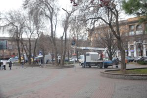 – На этой неделе мы должны привести в порядок площадь Маяковского. Почистить фонтан и подготовить его к монтажу елки. Ставить городскую елку на площади Маяковского мы начнем со следующего понедельника, – рассказали сотрудники КП «Титан».