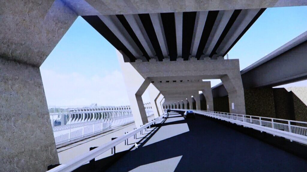 Відповідно до проекту, оновлений автопереїзд через греблю складатиметься з двох ярусів у кілька смуг кожен. Планується, що на нижньому ярусі, крім транспортних смуг, будуть пішохідні тротуари. На другому ярусі – разом із рухом транспорту передбачені велодоріжки в обидві сторони. Щоб розвести транспортний потік, верхній ярус відводять для руху з правого берега на лівий. Нижній – у зворотному напрямку.