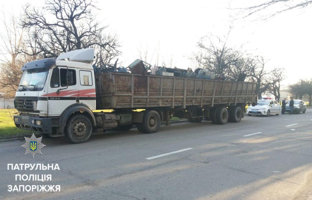 Вчера, 28 марта во время патрулирования Днепровского района запорожские патрульные заметили, как из гаража по улице Елены Телеги неизвестные грузили металлолом в автомобиль «КамАЗ».