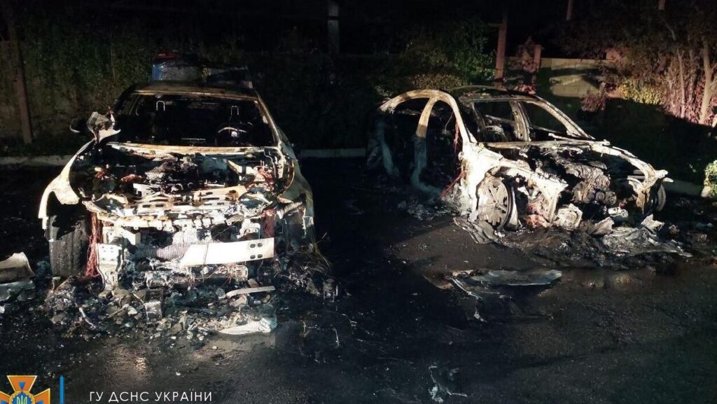 Співробітники правоохоронних органів встановлюють причину загоряння двох автомобілів.