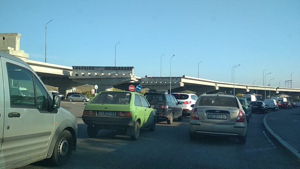 Сегодня, 10 октября, образовалась пробка из десятков автомобилей на Правом берегу Запорожья.