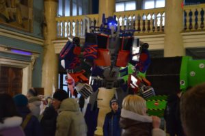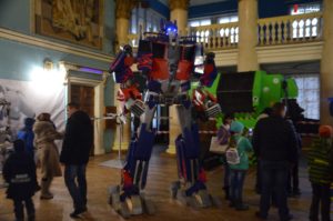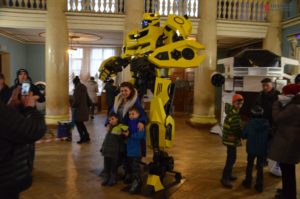 Дети с интересом «зависали» рядом с роботами и внимательно рассматривали мельчайшие детали. Отметим, что среди представленных работ есть как статические, так и движущиеся модели, например, грузовик “Peterbilt 379”, в который трансформируется “Оптимус Прайм”.