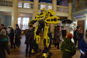 На целый месяц ДК превратился в базу любимых героев кинофильмов и мультфильмов. Посетители могут окунуться в мир Юрского периода с динозаврами, увидеть трансформеров “Оптимус Прайм”, “Бамблби”, миникона «Вили» и десептикона “Скорпонок”, мультяшных роботов “Валли” и “Ева”, противопехотный шагоход “AT-PT” и всем известный “R2-D2” из Вселенной “Звездных войн”, а также легендарного терминатора с пулеметом “M-134 Minigun”.