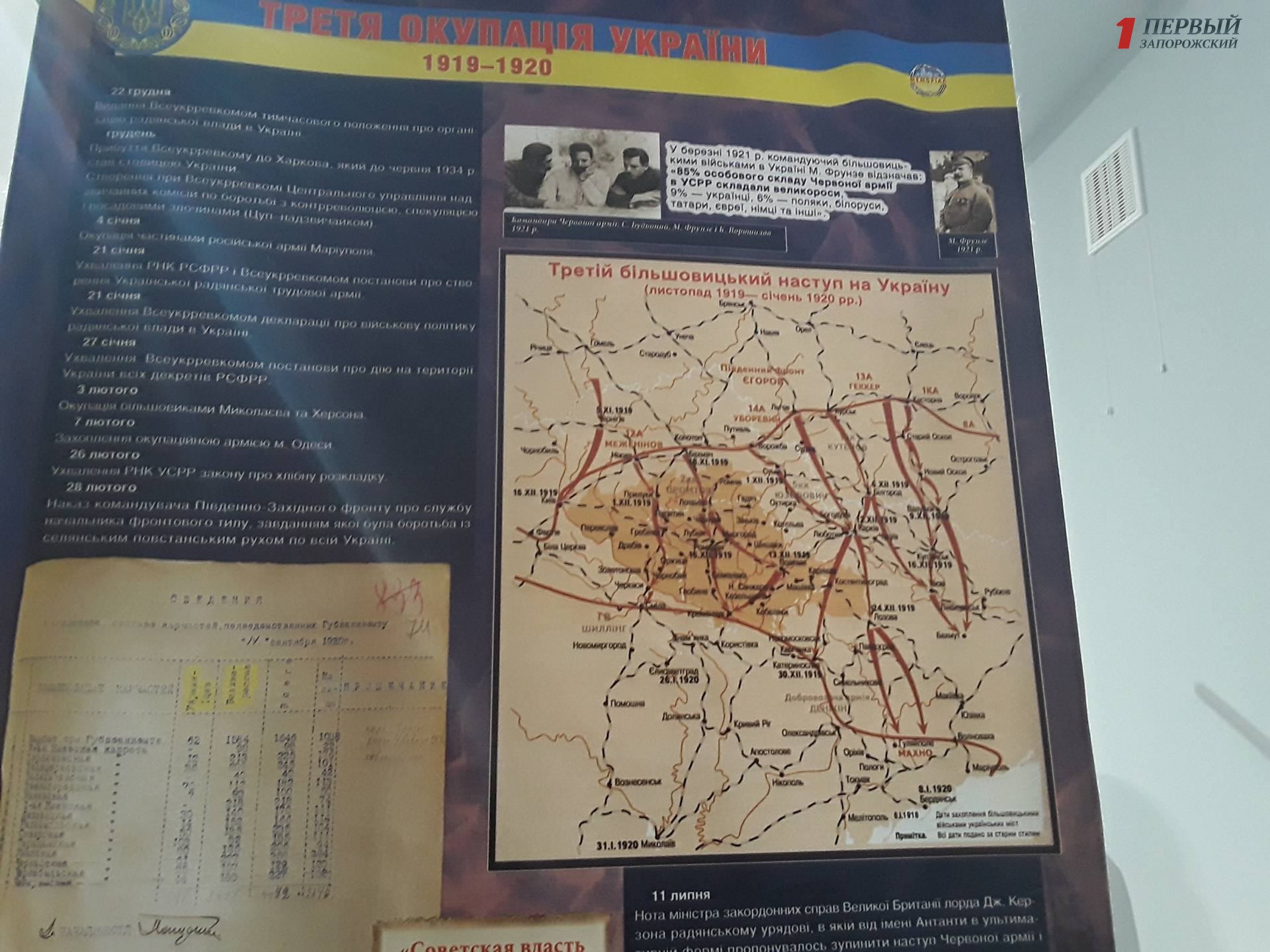 – Эта выставка рассказывает о нелегкой борьбе украинцев за свою независимость. Экспозиция показывает как создавалась УНР и, как на это новое государство отреагировала советская Россия. Сейчас на Востоке мы наблюдаем подобные процессы, которые происходили сотню лет назад. Запорожцы имеют определенные факты и делают свои конкретные выводы. Эта выставка дает возможность получить доступ к историческим документам, сопоставить, проанализировать события, процессы и сделать уже достоверные выводы. То есть, цель этой композиции – сдвинуть общественное мнение, – пояснил Владимир Лиников.