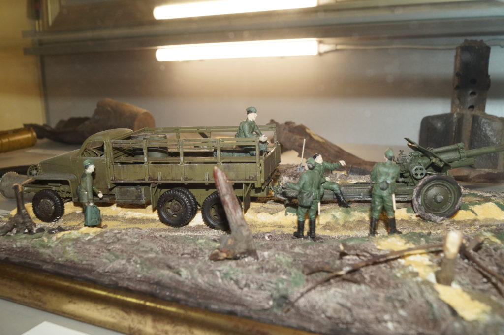 Участники мероприятия также побывали непосредственно в музее воинской части. Музей состоит из двух частей: экспозиции, посвященной Второй мировой войне, и экспозиции, отражающей участие военнослужащих бригады в боевых действиях на востоке Украины. Среди экспонатов – картины, военное снаряжение, личные вещи и фотографии военнослужащих разных поколений, которые служили в артиллерийской бригаде.