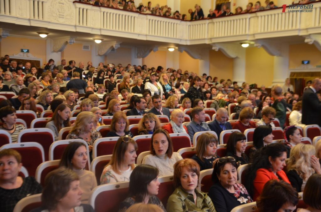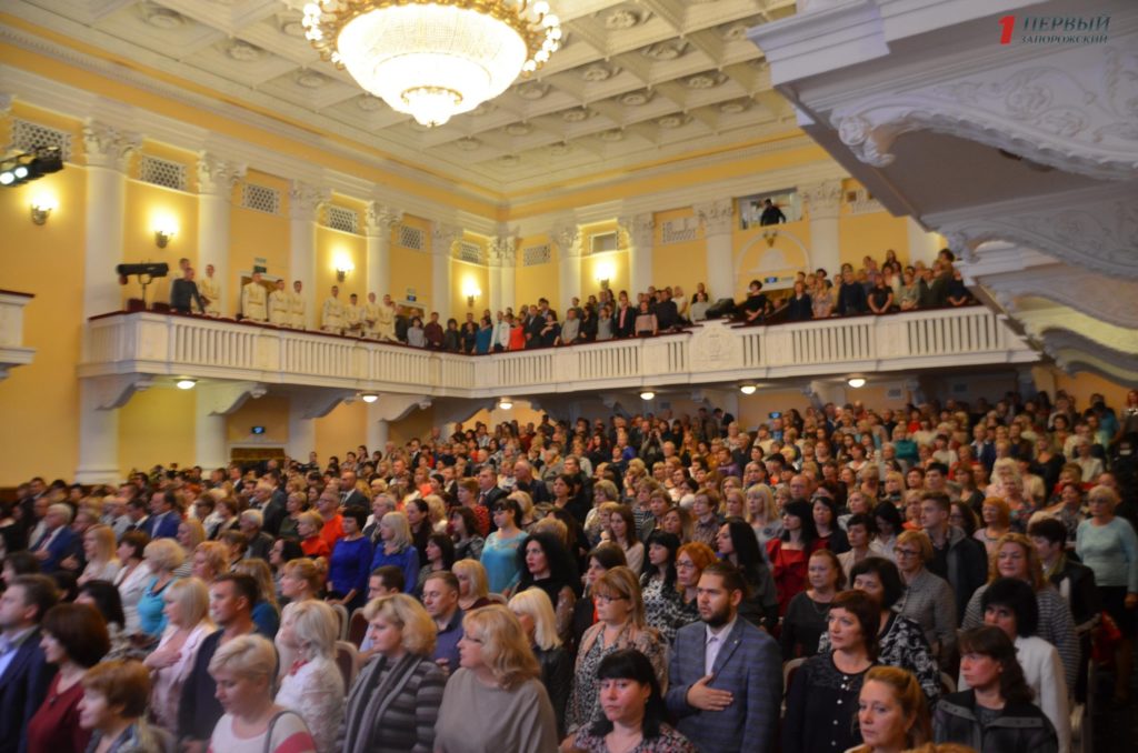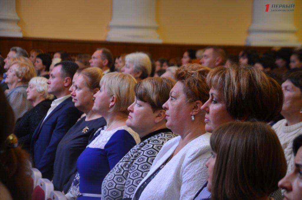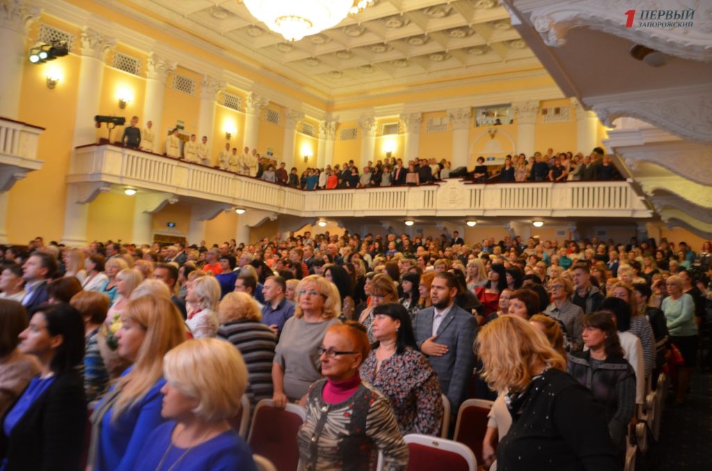 На праздничном мероприятии собрались сотни учителей и работников образования со всей Запорожской области, чиновники, а также неравнодушные горожане.
